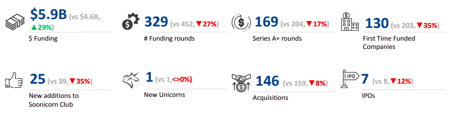 ● High Tech: Funding rose by 5% compared to 2023, but declined by 10.82% compared to 2022.