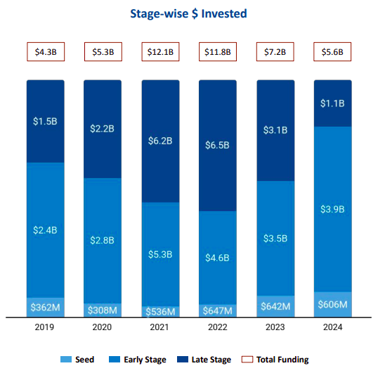 ● Early-Stage Funding: Early-stage investments surged to $3.9 billion in 2024, marking an 11.43% increase from $3.5 billion in 2023.