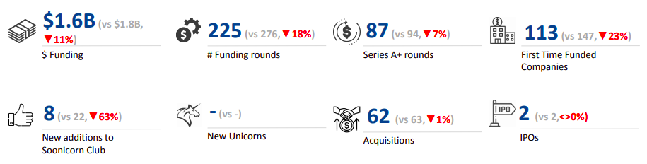 Acquisition activity saw a slight decline, with 62 deals completed in 2024 compared to 63 in 2023 and 90 in 2022. Idealist was acquired by Cinven at a price of $3.1B. This becomes the highest valued acquisition in 2024. Additionally, Livespins was acquired by Evolution Robotics for $5.4 million.