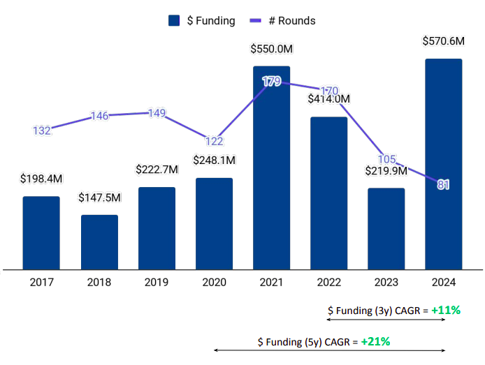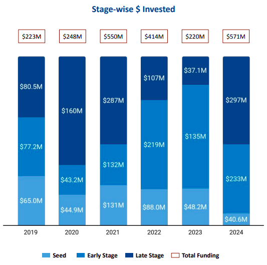 ● Early-Stage Funding: Early-stage investments surged to $233 million in 2024, marking a 73% increase from $135 million in 2023.