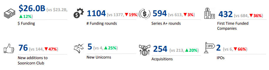 Accompanying this unicorn surge, the year also saw a notable uptick in acquisition activity, totalling 254—an increase of 19% from 2023, but down 12% from 2022. Capital One's acquisition of Discover for $35.3 billion, Siemens' purchase of Altair for $10.6 billion, and Bain Capital's acquisition of Envestnet for $4.5 billion underscored strategic shifts and consolidation within the industry.