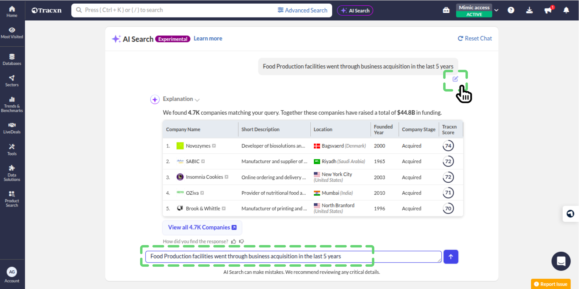 Click on the edit button to modify your previous query. Once clicked, the query will be populated in the text-box.