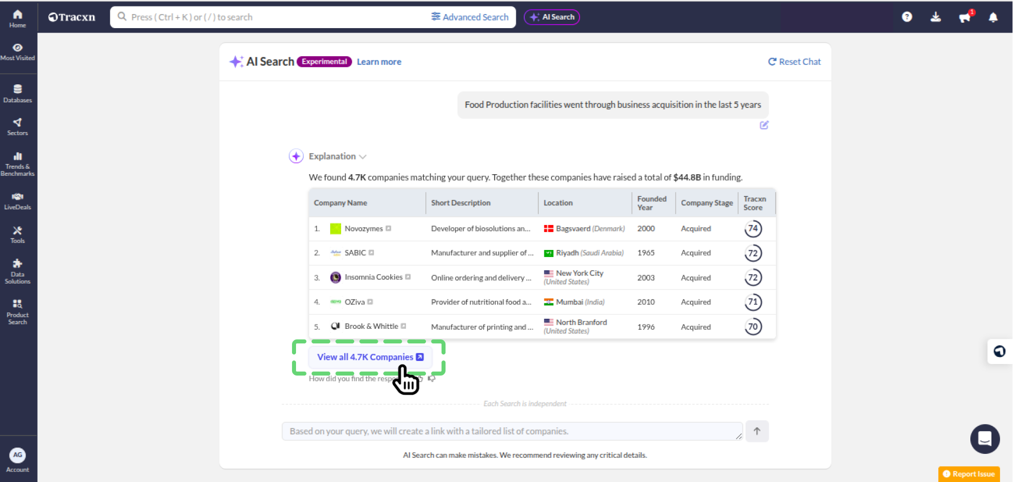 Clicking on “View all “N” Companies” will take you to the company list page where you will see the filtered view of companies based on your query.