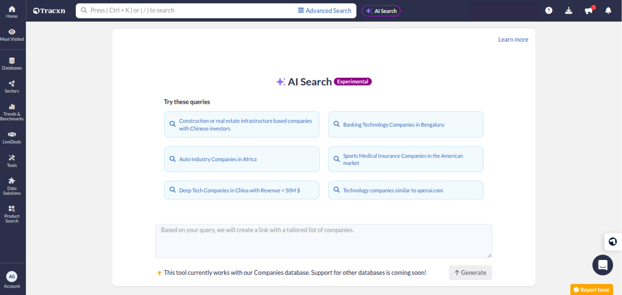 Just enter & submit your query and get a link with a curated list of companies especially generated for you.