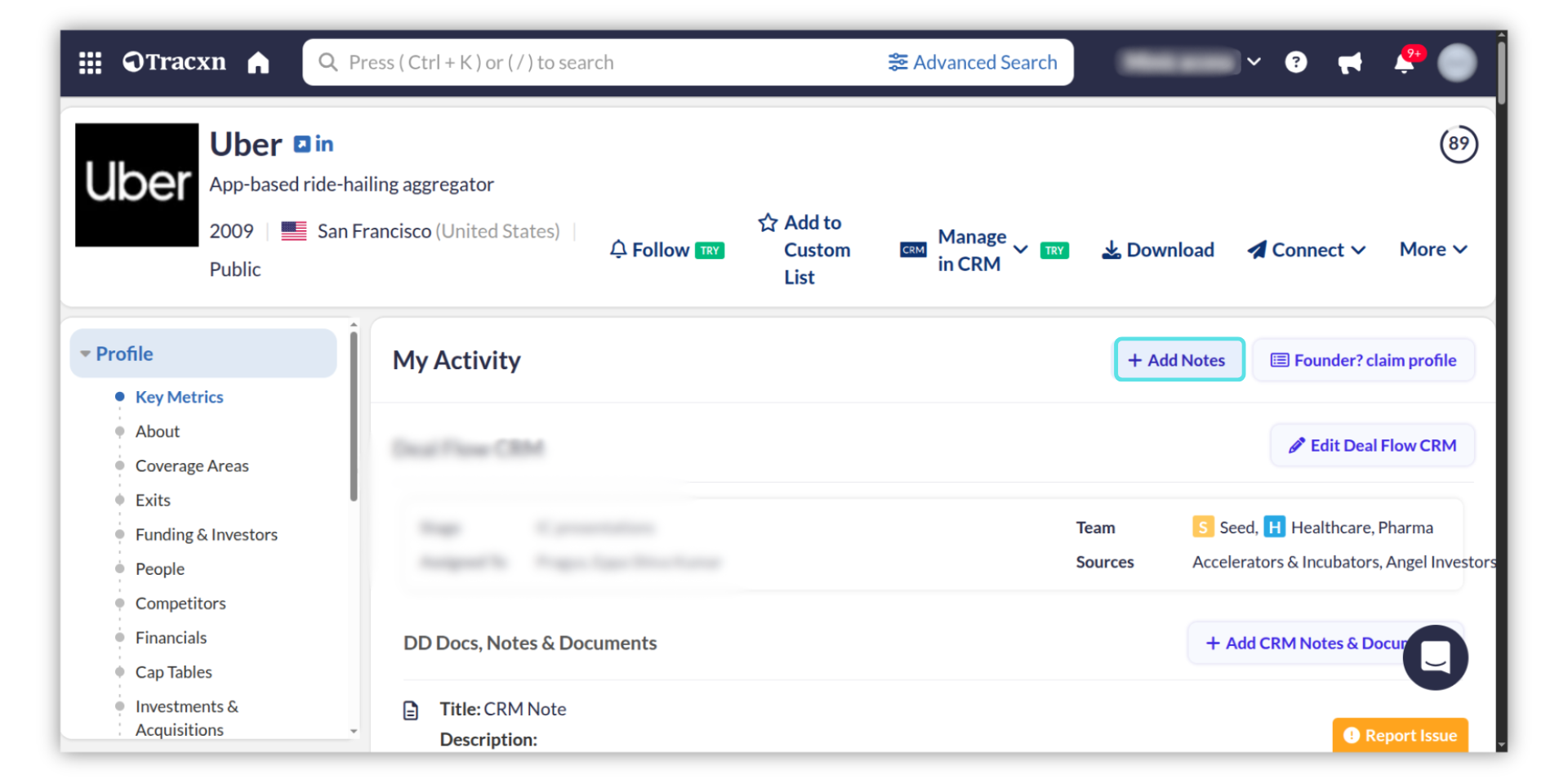 In the Company Detail page, navigate to the "Add Notes" tab.