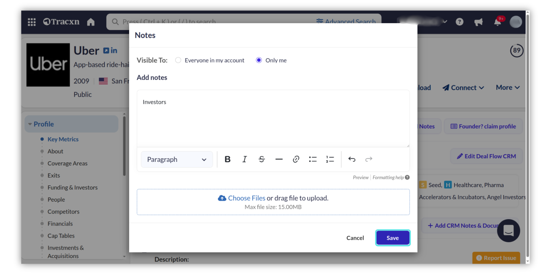 You can add your own comments on the companies listed on the platform for your reference. You can choose the visibility options for you and other users in your account.