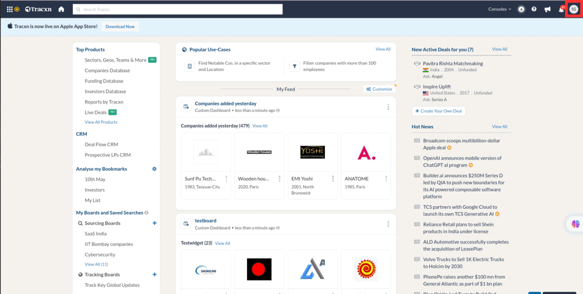 Credits information can be viewed using the "Exports History" option available under your name's initials shown at the top far-right corner of the screen. You can use this link to see your credit balance and your download history.