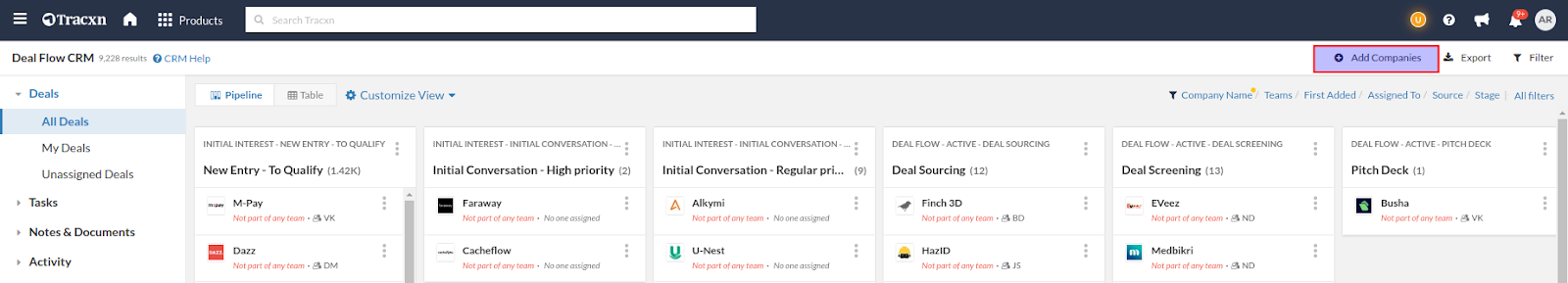 You can easily migrate companies in your current set-up to the Tracxn Deal Flow CRM.