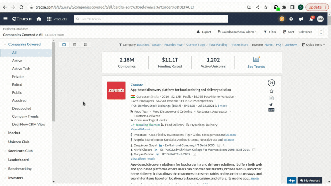 Query is a Tracxn URL that has a list of companies with/ without filters applied.