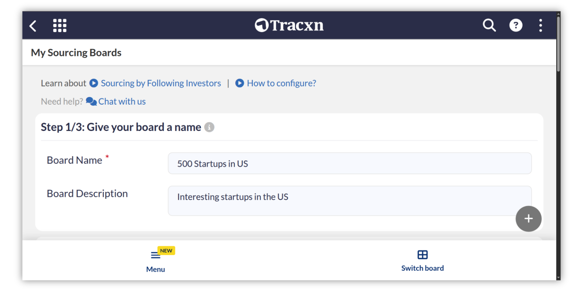 Go to About Sourcing by Following Investors section and click on "Set up a new board now" or click here.