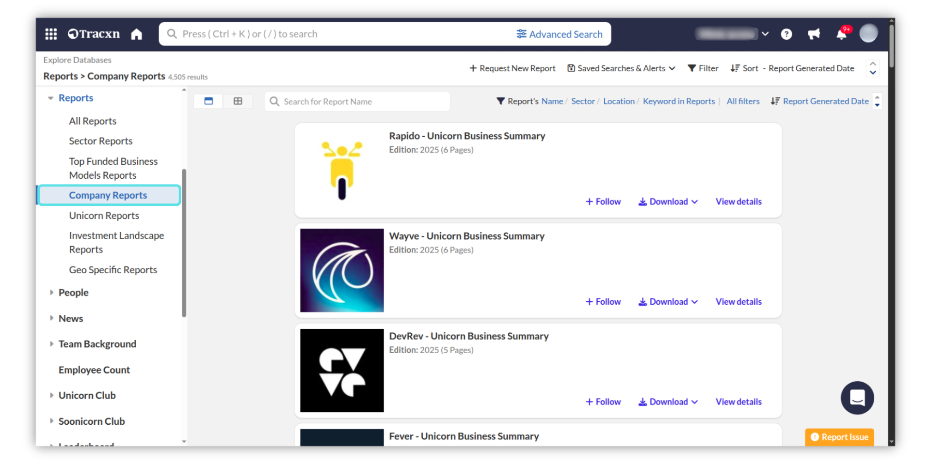 Tracxn's Company Reports helps to deep dive into any company during the evaluation or diligence phase.