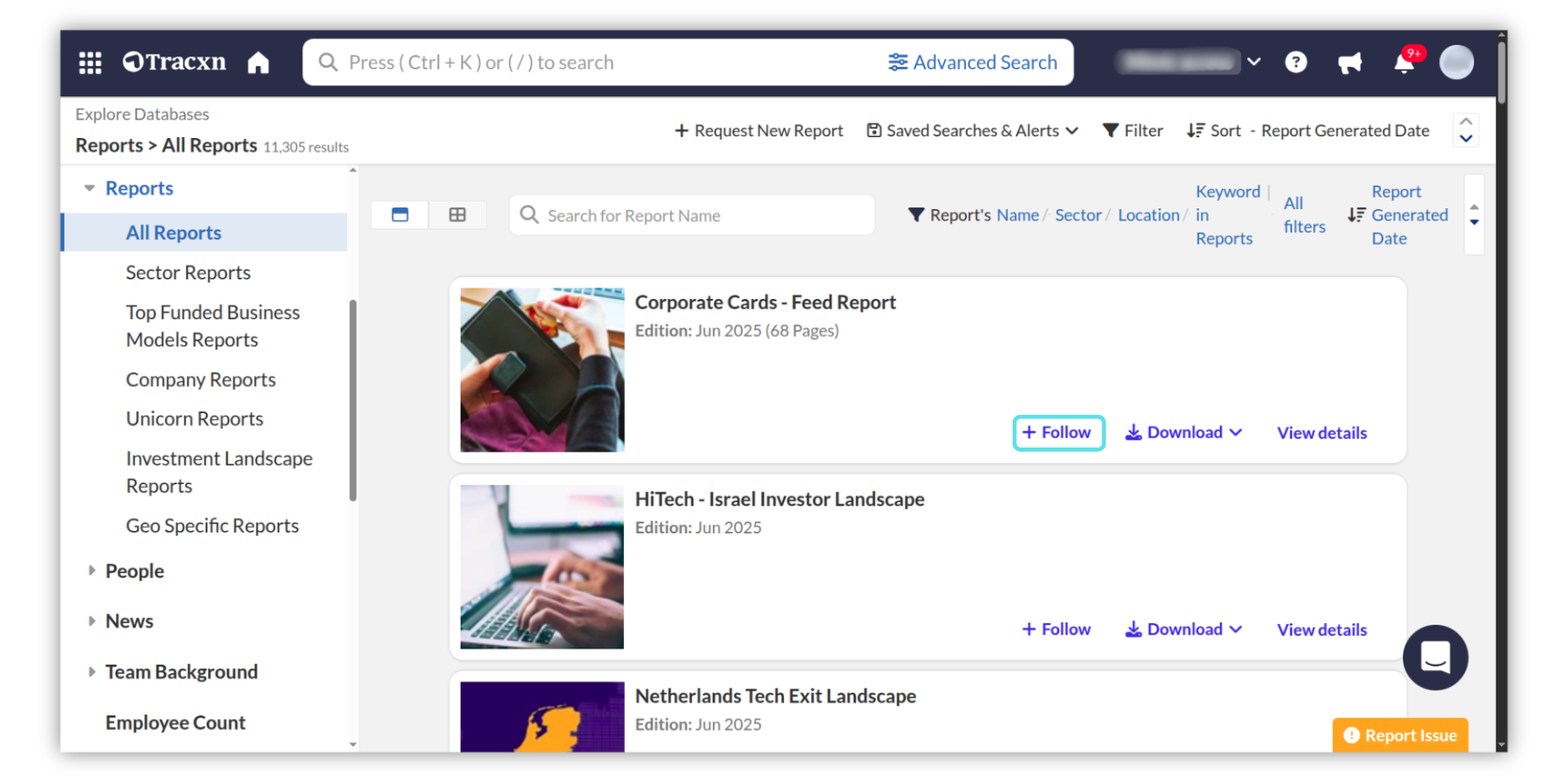 Follow feature allows you to track reports of your interest to get notified whenever a new edition is available.