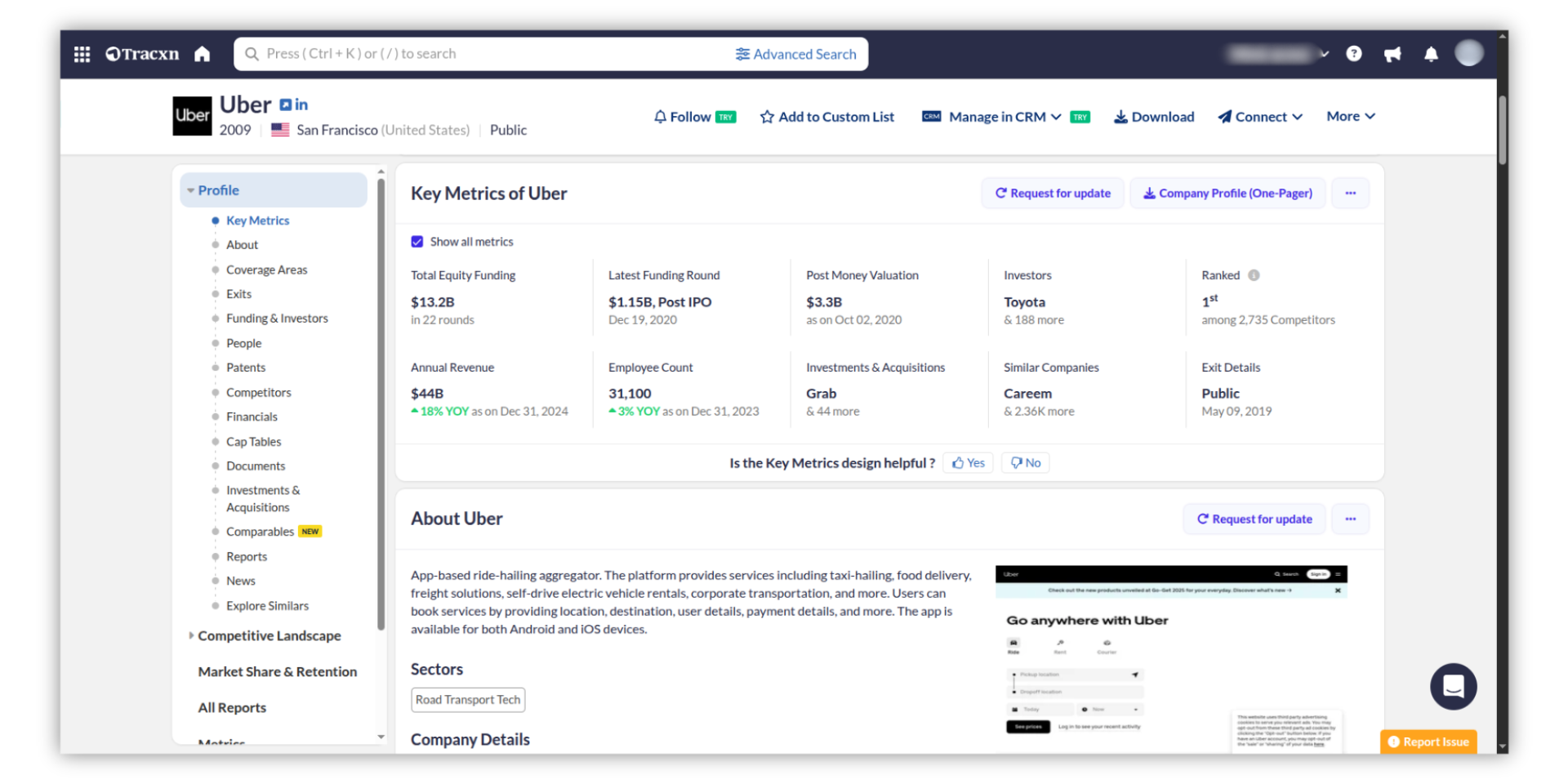 Clicking on search result will open the Company Details Page