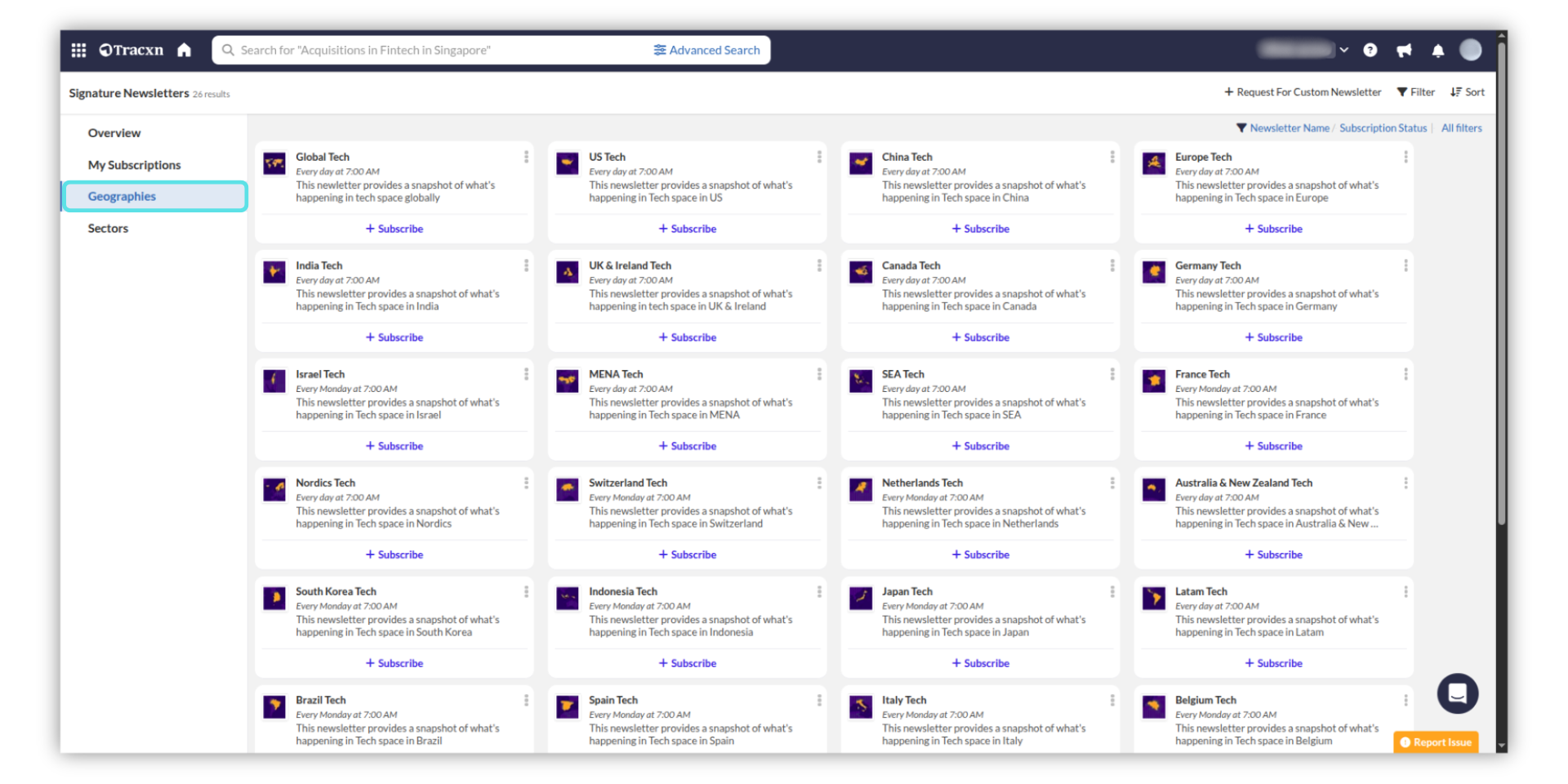 Geographies - Provides Newsletters based on Geo for the Tech sector.