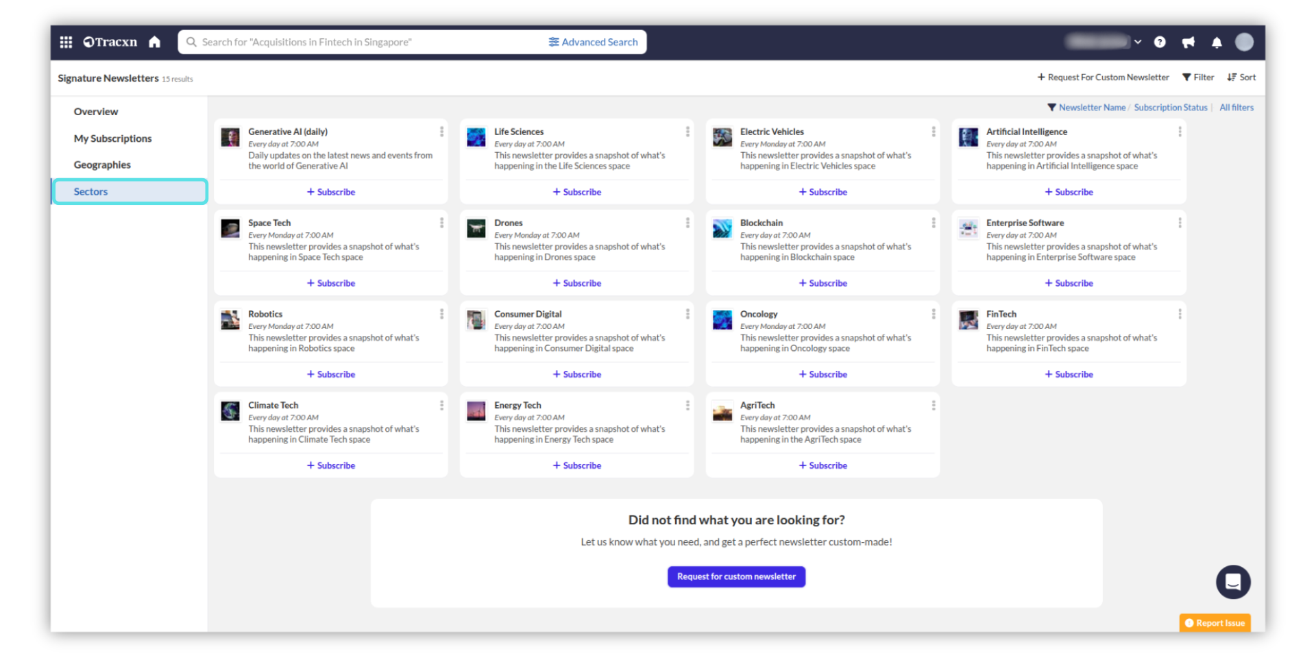 Sectors - Provides Newsletters for the sectors present on the Platform.
