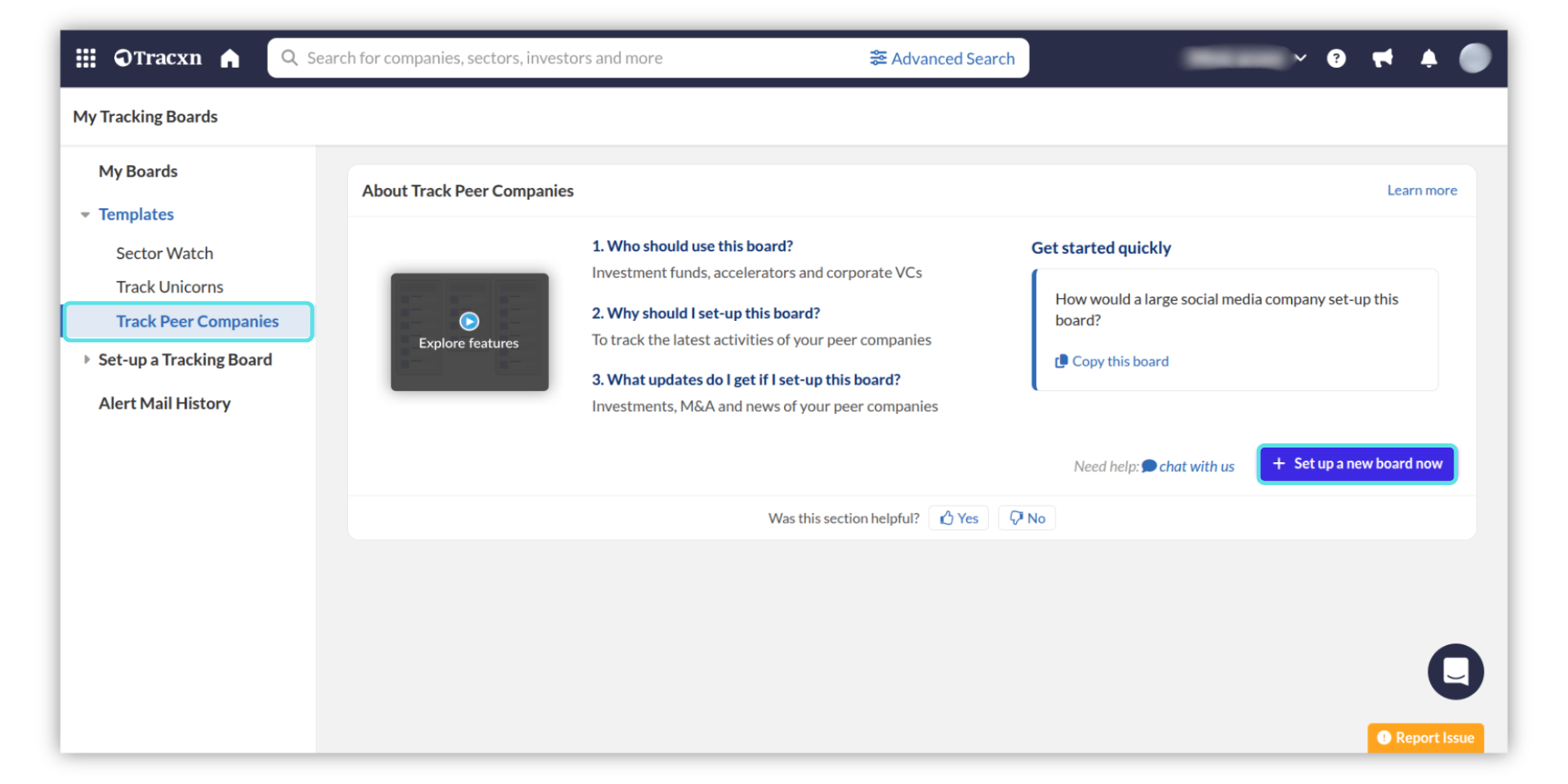 Go to the "About Track Peer Companies" section and click on "Set up a new board now".