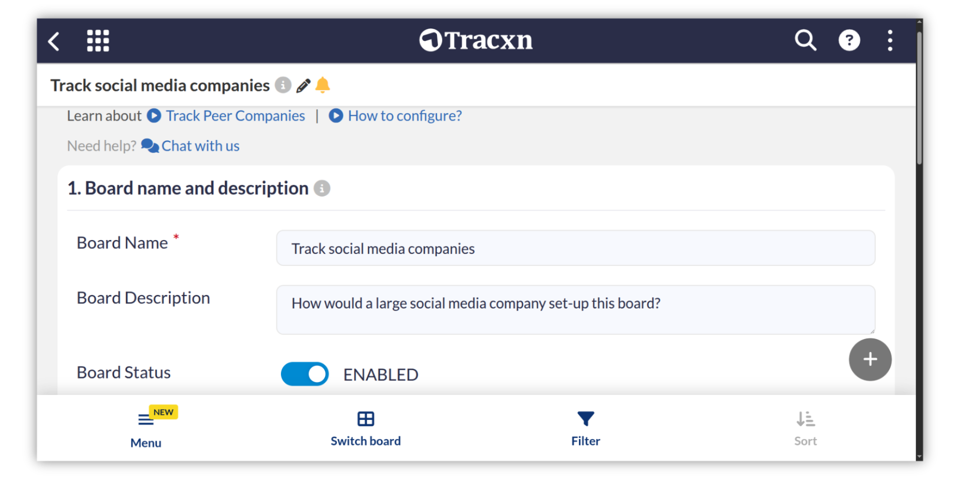 You can follow these simple steps to set up the Track Peer Companies board as per your mandate.