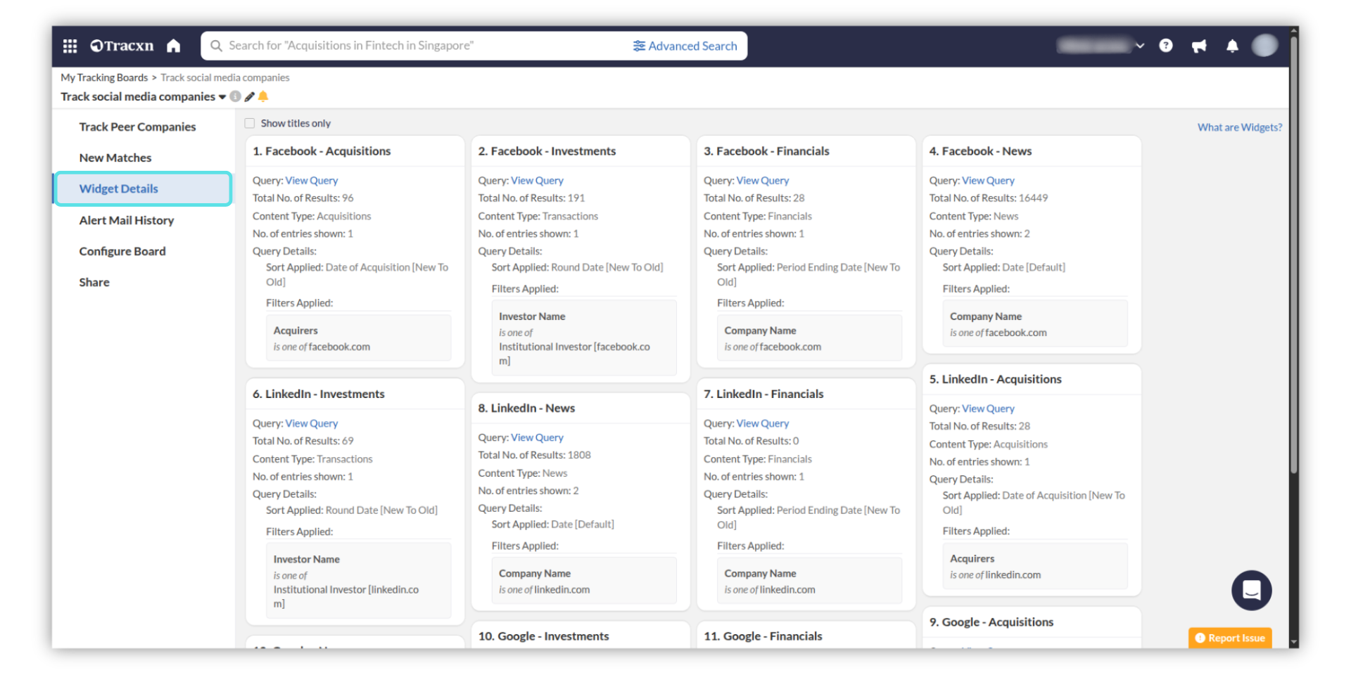 You can view the below widgets in the Track Peer Companies board. Each widget provides information on the latest key activities of the peer companies selected as per the mandate.