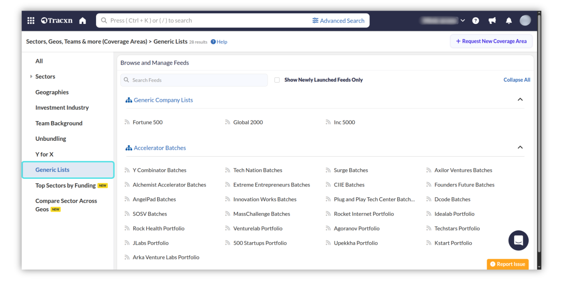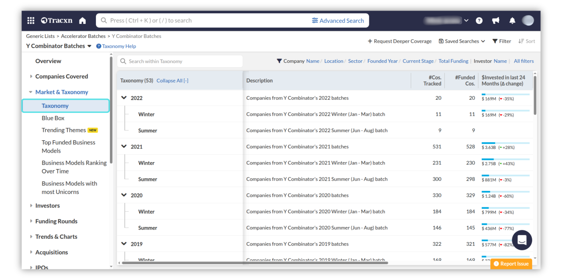 Companies in each Accelerator batch are usually categorized based on the year of completion of the program. You can identify these sub-categories from the market view of Companies Generic List.