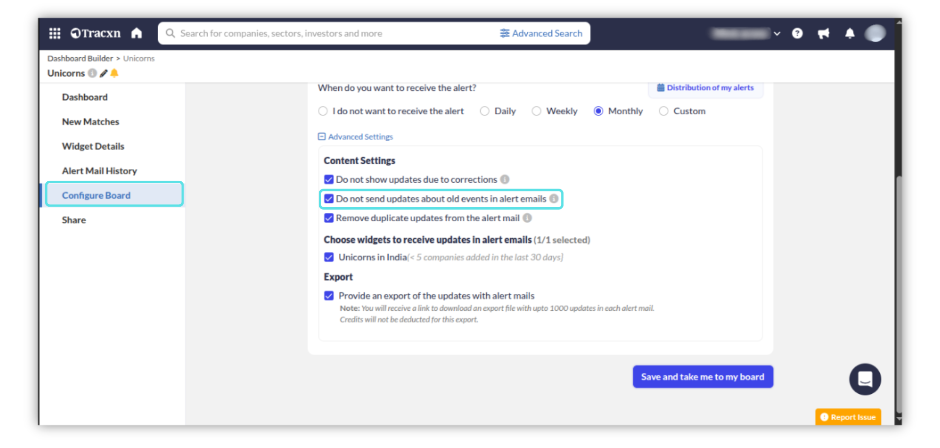 This will exclude updates related to Old News, Funding Rounds, Soonicorn Activity, Acquisition Activity, and Reports from your alert mails.