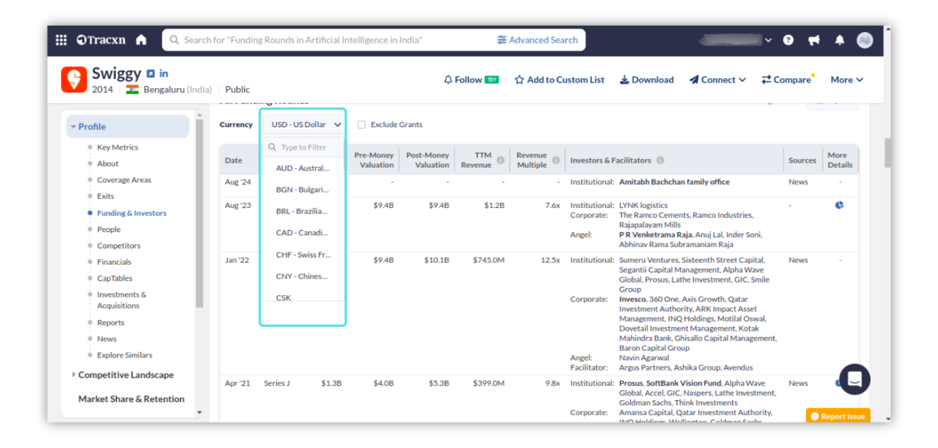 Funding round amount can be viewed in the currency of your choice for any company.N8