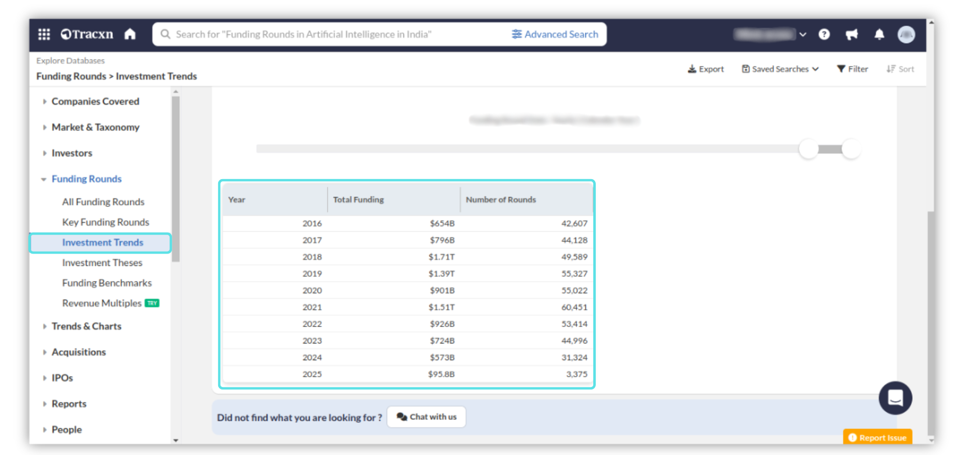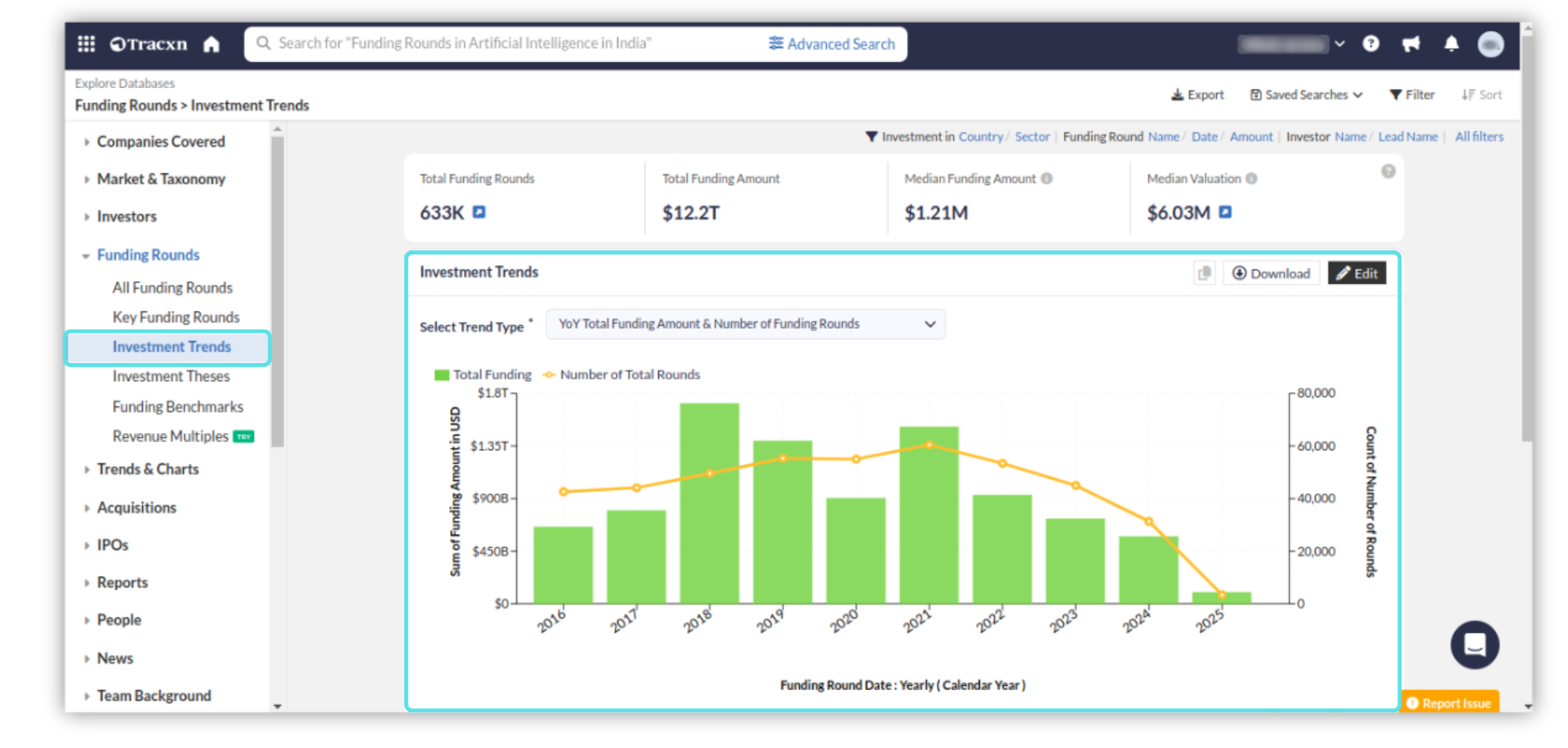 Overall, the Investment Trends view is a valuable tool for investors, researchers, and anyone interested in tracking investment patterns and trends in various industries and geographies.