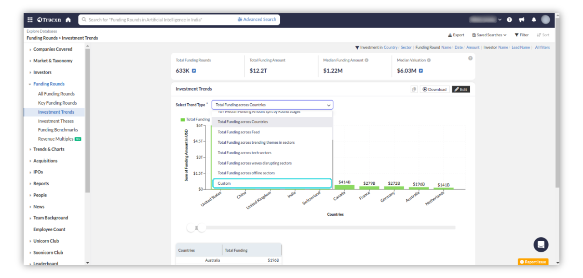Select the "Custom" chart from the drop-down on the Investment Trends page.