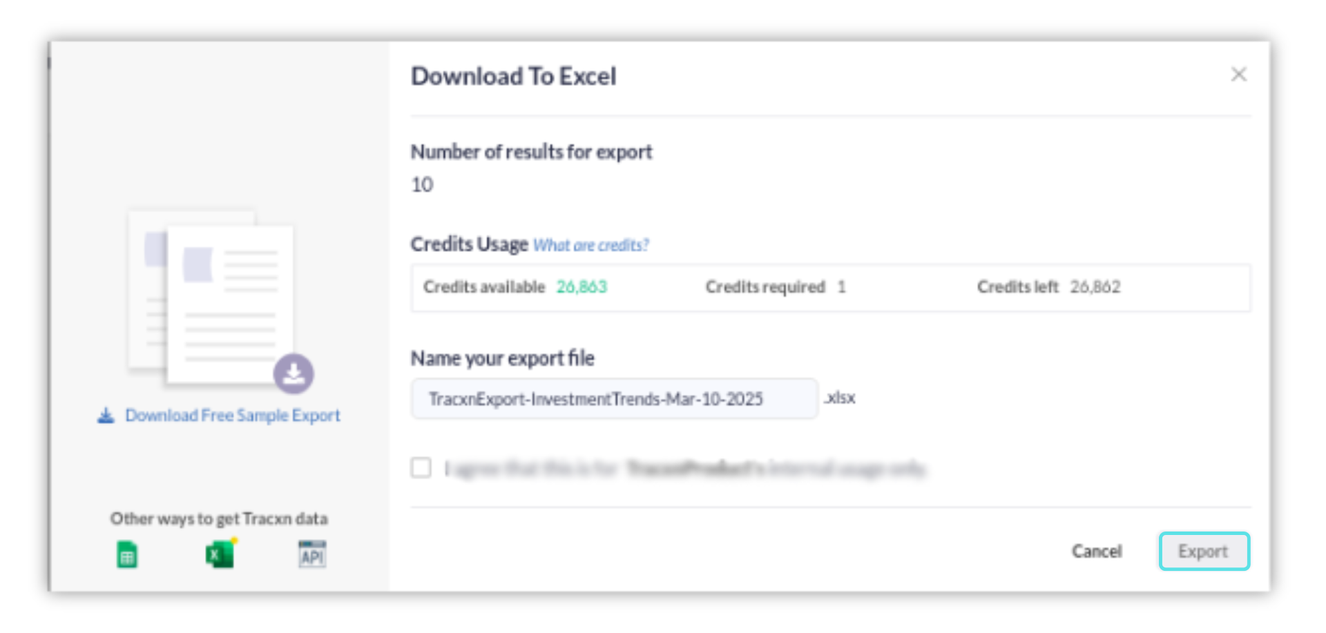 You will receive an email from where you can download the excel file. Alternatively, you download the excel file from the “Export History” dashboard