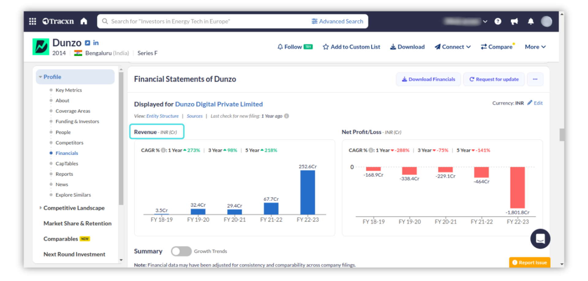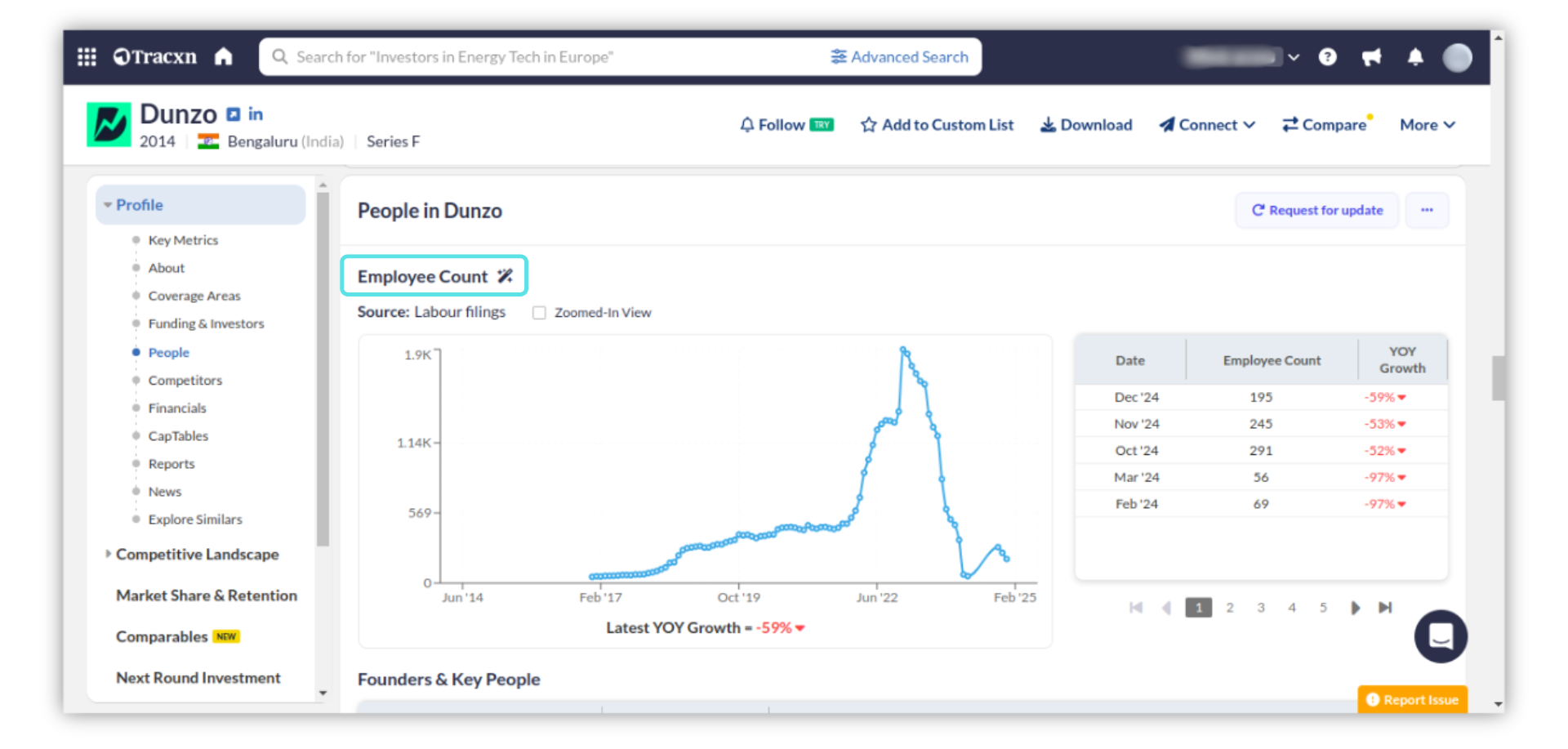 Employee count data can be used as a proxy for a company’s growth in multiple aspects. Below is an example of employee count and revenue correlation.