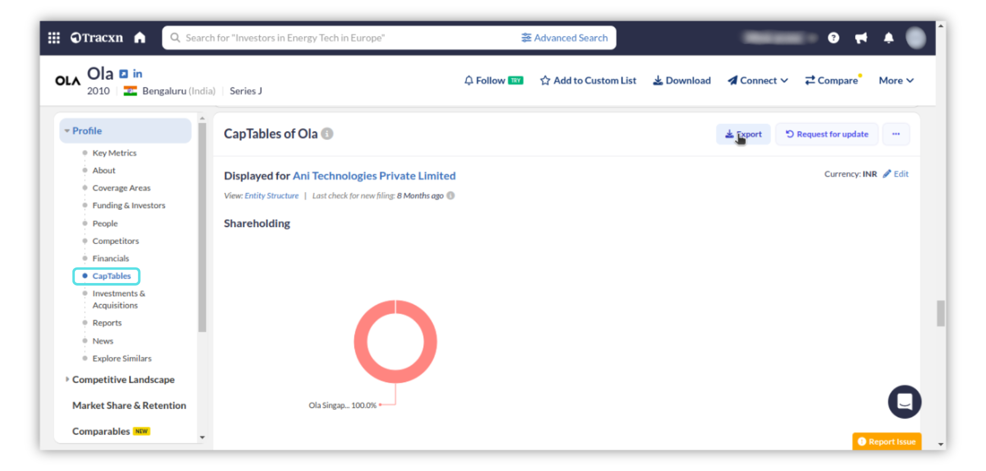 You can access Captables on the Tracxn platform in two ways: