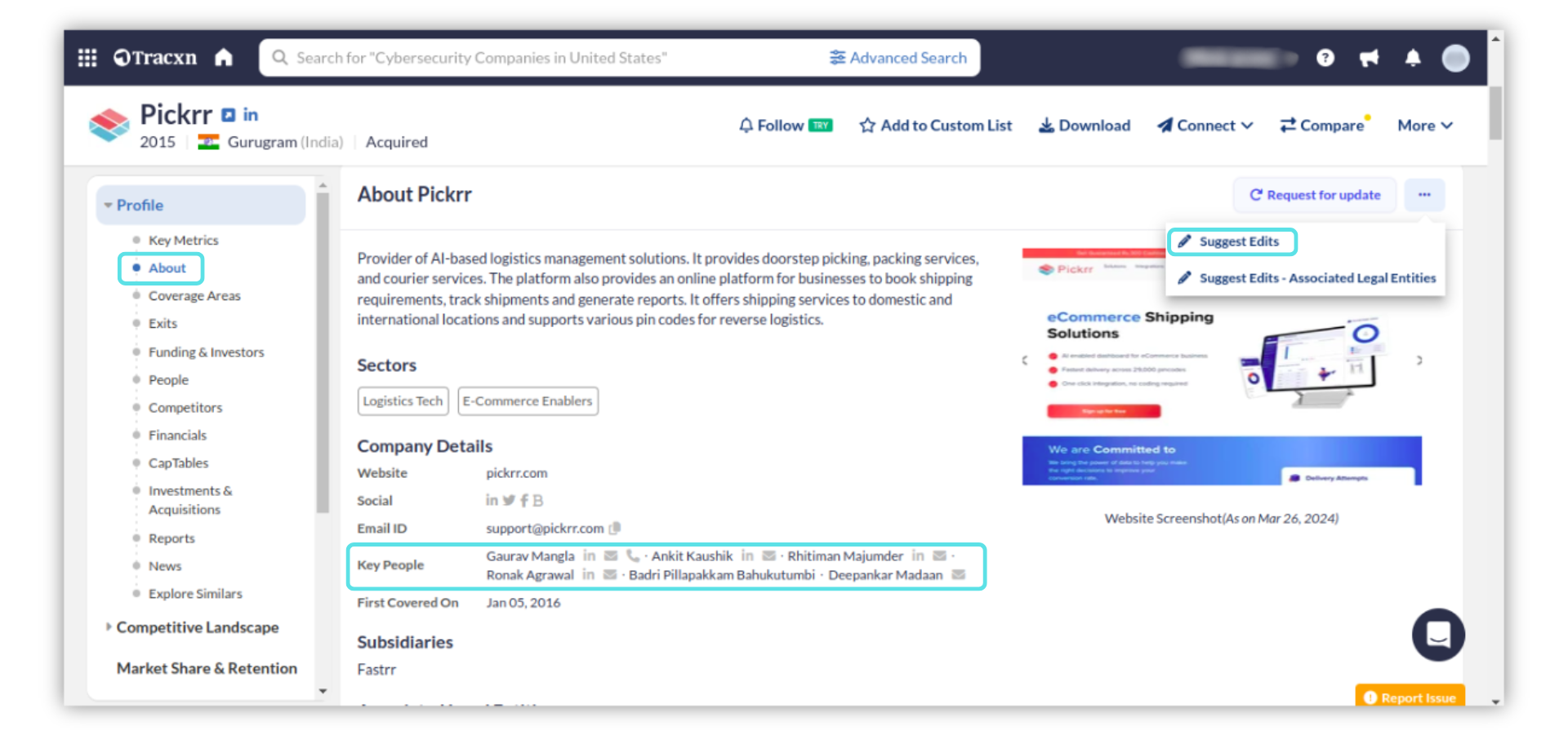 Team information tracked by Tracxn includes Founders, Board Members, and other Executive Members associated with the company.