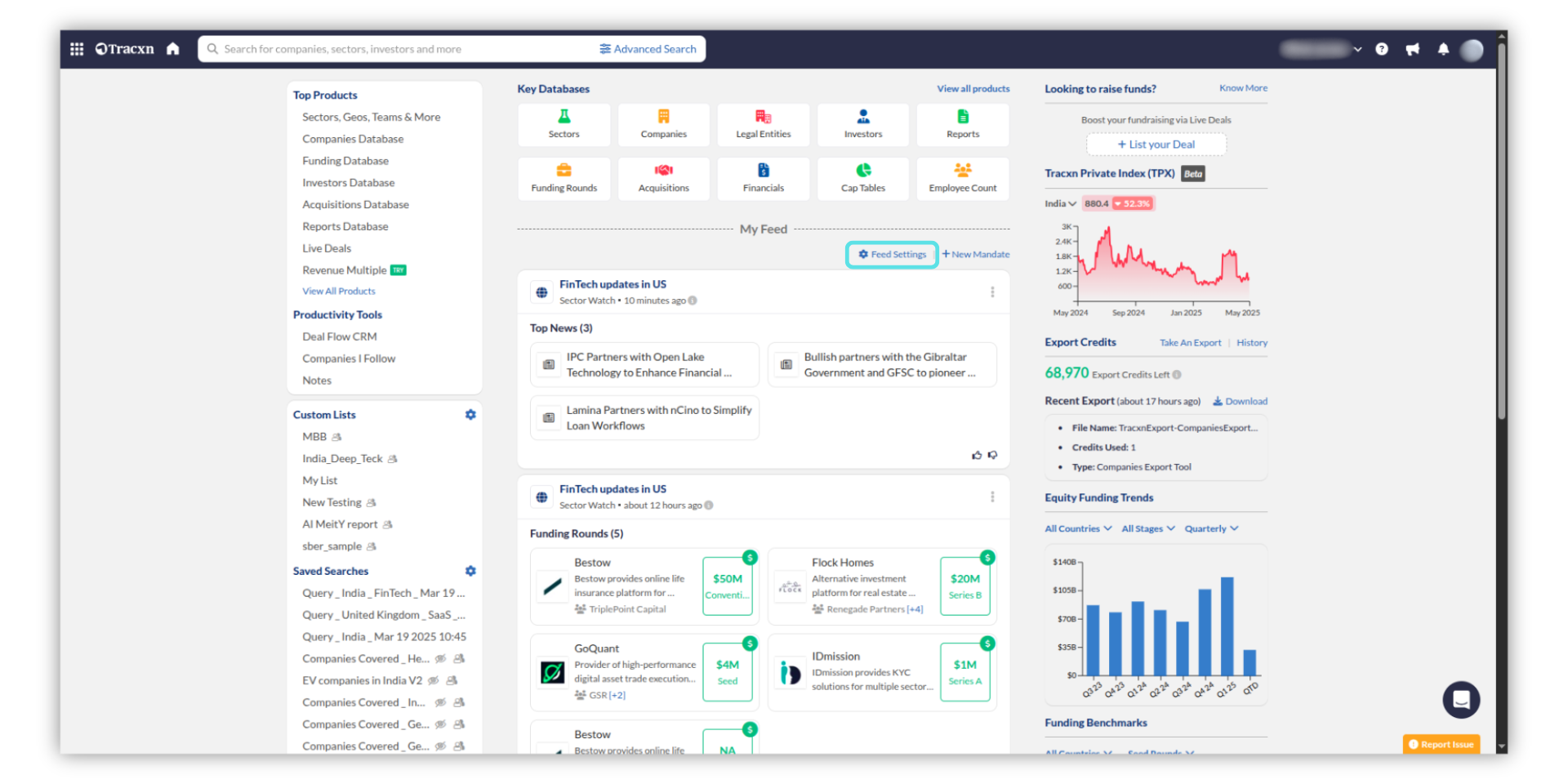 You can also customise your home dashboard view using the ‘Feed Settings’ option located on top of the home page.