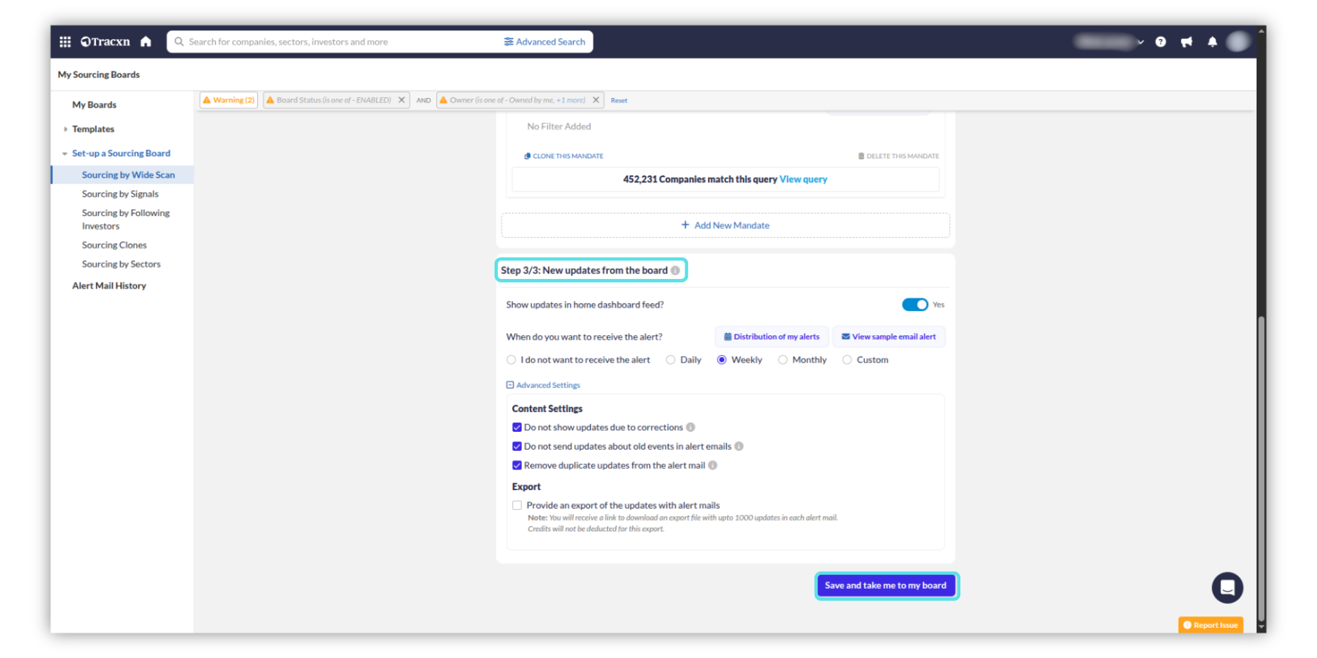 Alerts can be configured while setting up your sourcing board.
