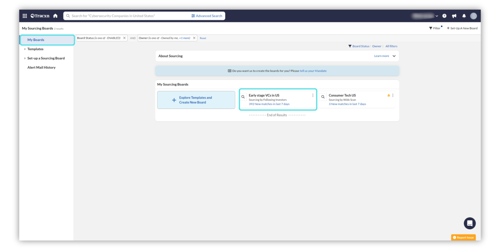 Go to Products > My Sourcing Boards. This will open the “My Sourcing Boards” page.