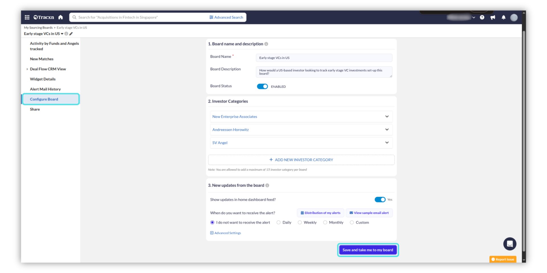 Click on the "Save and take me to my board" button to save the changes and view the updated dashboard.