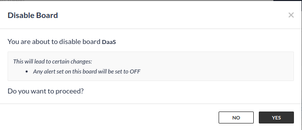 You will be prompted to confirm your action to disable the board. On confirmation, the board and any alerts set on the board will be disabled.