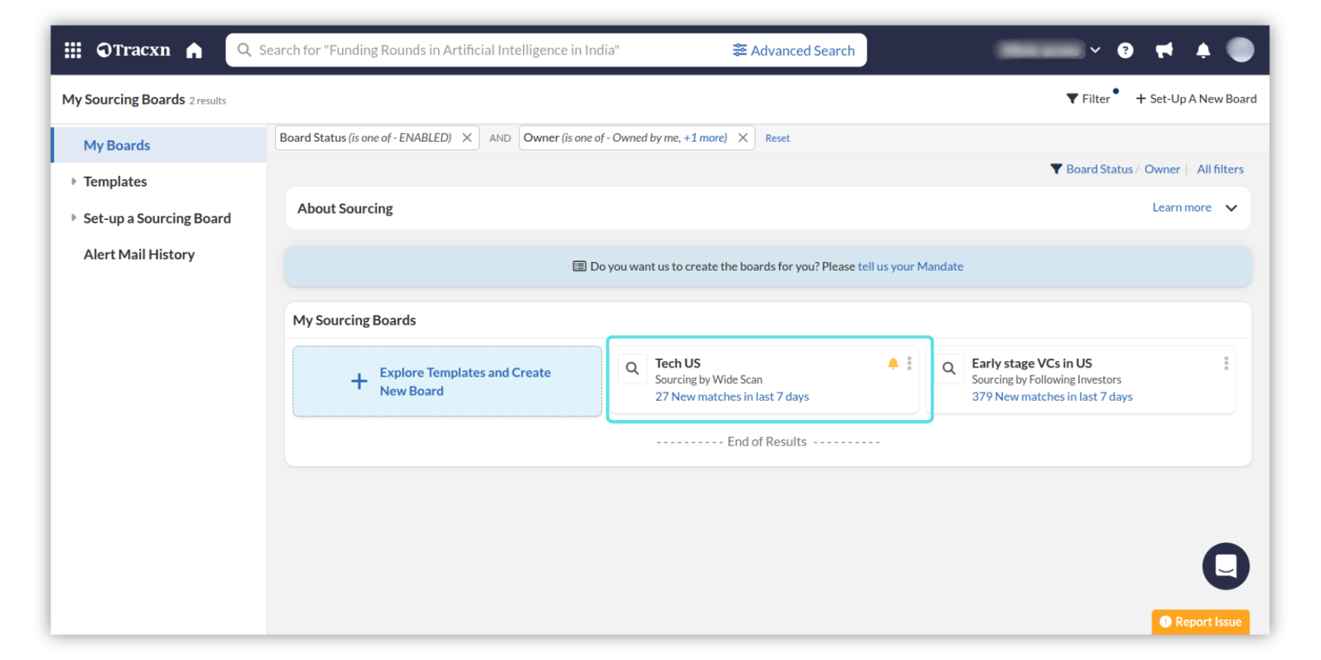 Click on the desired dashboard from the My Sourcing Boards home page.N8
