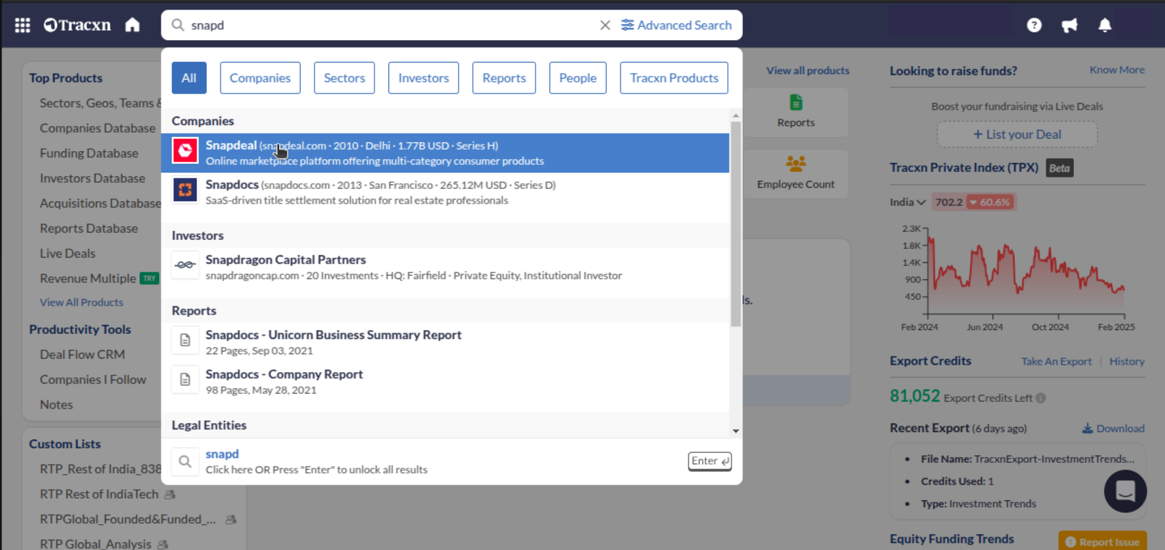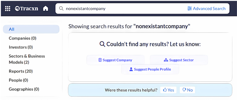 If your company is not showing up in search results, that means your company is not curated on Tracxn