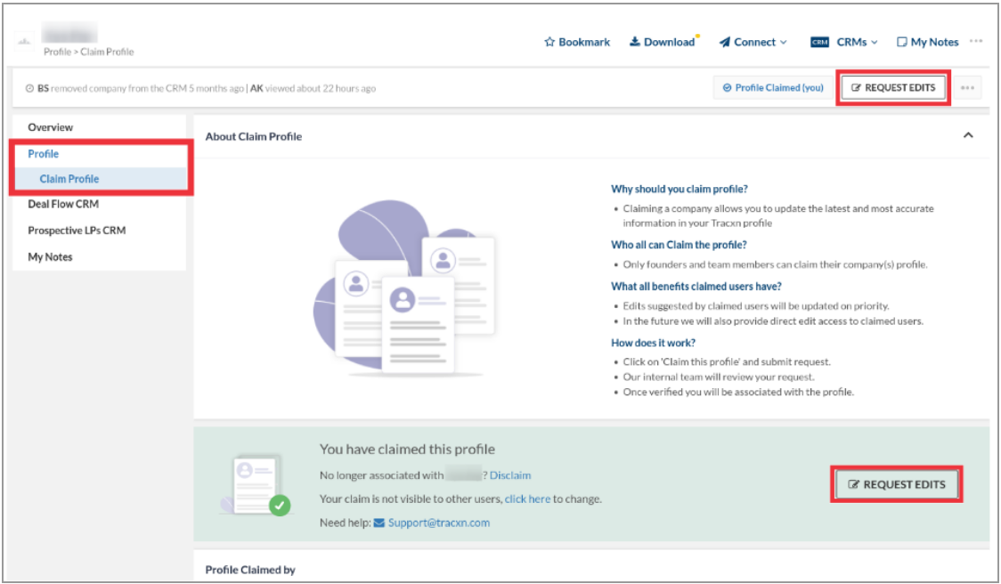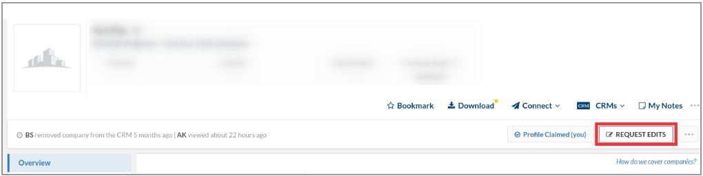 Once you have claimed your company profile, on the company detail page, click on Request Edits button