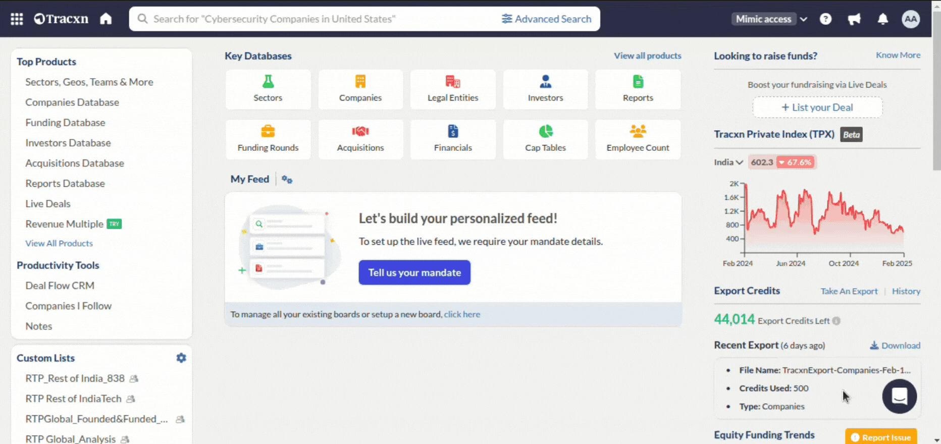 Alternatively, choose the Companies Database option from the Tracxn homepage.