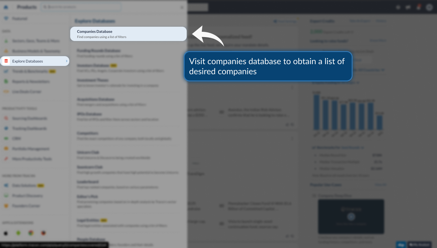 You can go to the Products menu > Explore Databases > Companies Database
