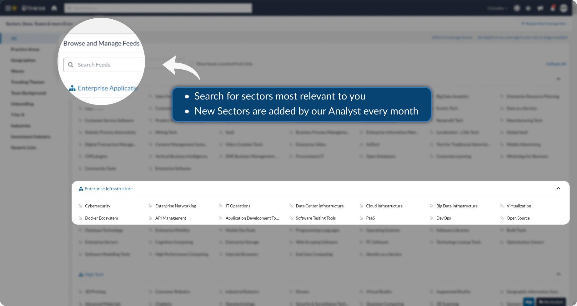 The Tracxn subscription gives you access to over 2800+ sectors or “Feeds”. We group these feeds under “Practice Areas”. For example,Sports the “Consumer” Practice Area includes feeds such as “Online Travel”, “Social Platforms” and “Fashion Tech”.
