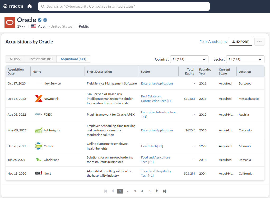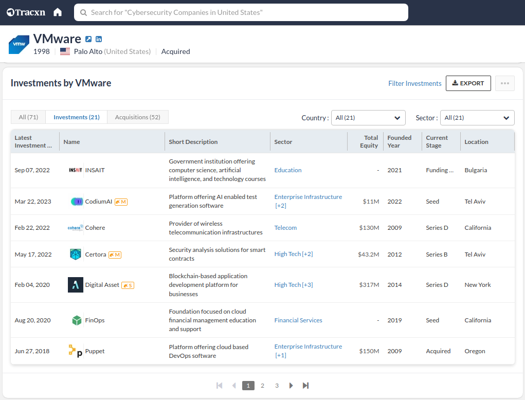 Use filters to identify the sectors and countries where they are most active. Download this data with ease using our "Export" option for further analysis.