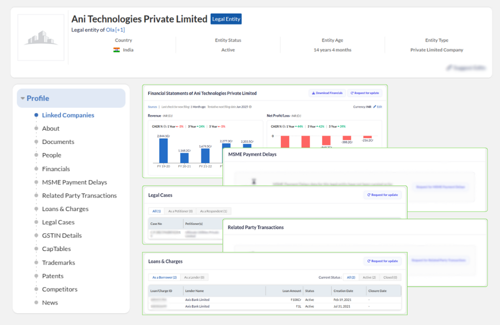 Access structured financial performance, corporate hierarchies, shareholding patterns, and director profiles sourced directly from statutory filings to conduct thorough entity-level research.