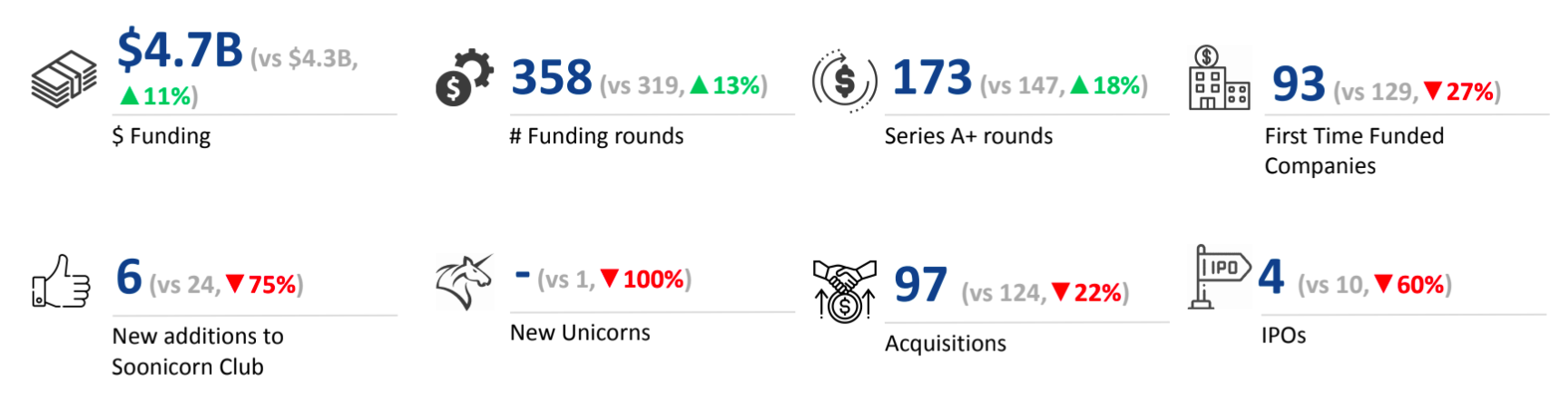 The Canada tech ecosystem showed steady momentum in 9M 2025, with overall funding increasing from the previous period, supported by a strong rebound in late-stage investments. Robust activity across Enterprise Applications, Enterprise Infrastructure, and Environment Tech reflected continued investor focus on scalable enterprise solutions and innovation-driven sectors. Although no new unicorns emerged and IPO and acquisition activity moderated, the consistent funding growth highlights the resilience and maturity of Canada’s tech landscape during the period.