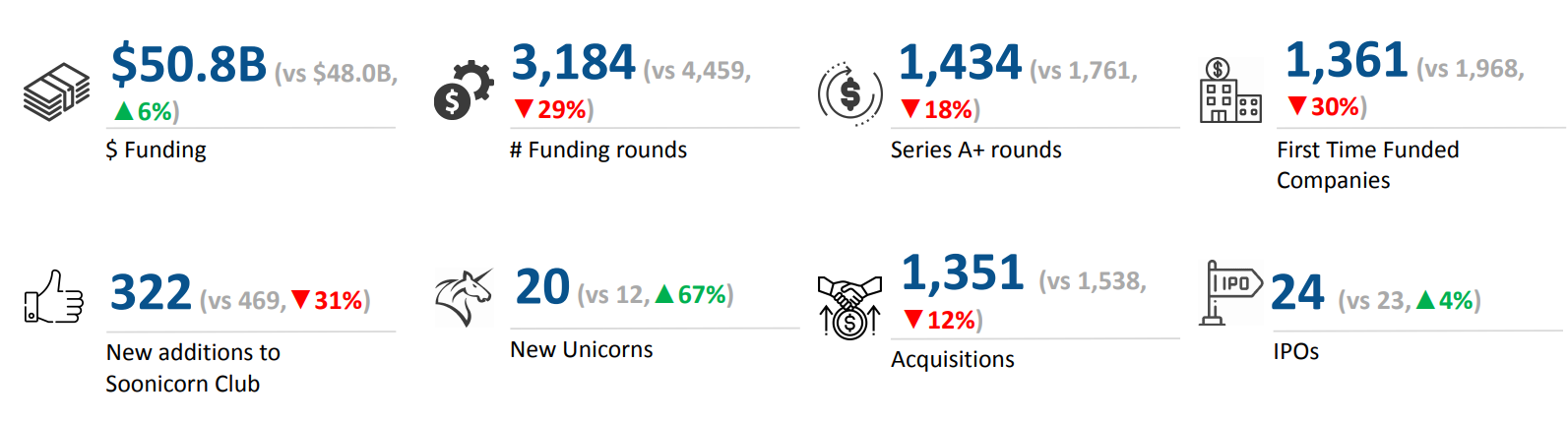 The Europe Tech ecosystem recorded $50.8B in funding in 2025, supported by a strong rise in late-stage investments and sustained mega funding activity. While seed and early-stage funding declined compared to previous years, the growth in Enterprise Applications and Life Sciences, along with continued FinTech investment, shaped sector performance. Unicorn creation increased significantly, IPO activity remained active, and acquisitions continued at scale, led by multi-billion-dollar transactions, positioning Europe as an active and diverse technology investment landscape in 2025.