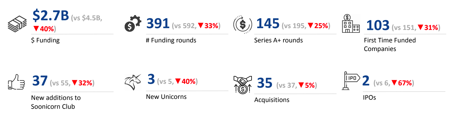 Karnataka’s tech ecosystem continued to demonstrate strong activity in 9M 2025, with healthy participation from investors across stages. Early-stage funding remained active, reflecting sustained confidence in the region’s growing startup base. Mid-stage and late-stage investments also continued, indicating steady scale-up momentum among established companies. Acquisition activity remained robust, contributing to the overall strength of the market. The period additionally saw the emergence of new unicorns and two companies going public. Overall, the ecosystem continued to evolve with greater maturity and sustained dynamism throughout 9M 2025.