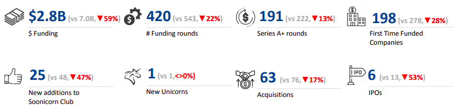 While overall acquisitions slowed to 63 deals, down from 76 in 2023 (17% drop), notable transactions like PropertyGuru’s $1.1 billion acquisition by EQT and GHL’s $154 million acquisition by NTT reflected targeted consolidation efforts. Only one unicorn, Polyhedra Network, emerged in 2024 similar to one in 2023. The number of IPOs, too, declined by over 50%, falling to 6 in 2024 from 13 in 2023.