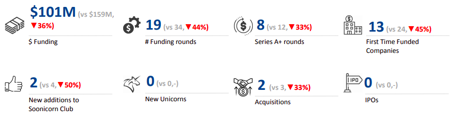 No new unicorns emerged in Q3 2024, similar to the scenario in the corresponding quarter last year. Further, there was hardly any activity with only two acquisitions and an absence of IPOs.