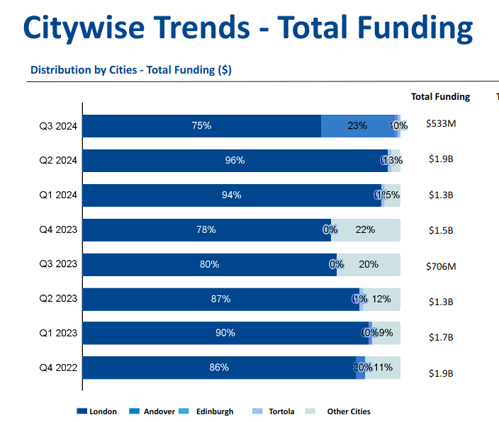 Tracxn's research desk publishes quarterly analysis of the broad funding trends in startups and tech companies across the globe. The following are the key findings from the UK FinTech report for July-August-September 2024.